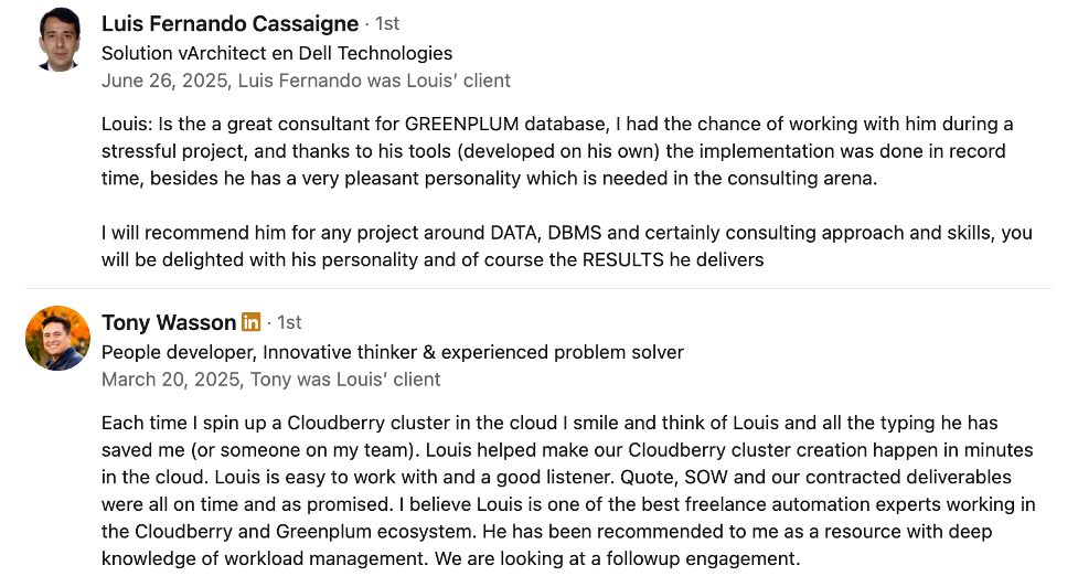 We bring decades of Greenplum expertise and have worked with deployments ranging from Fortune 500 enterprises to public sector agencies. The GPRA onboarding service reflects our commitment to automation, repeatability, and measurable results.