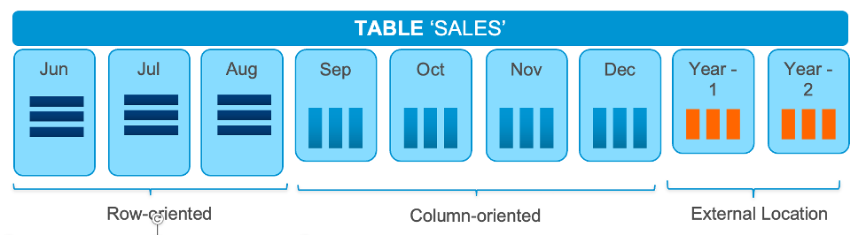 The functionality in this toolset makes it possible to automate the conceptual “Polymorphic Design” Greenplum has encouraged for many years. A Polymorphic design architecture allows you to configure a single table utilizing multiple physical design formats as shown below: